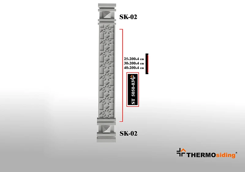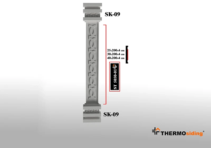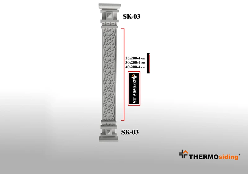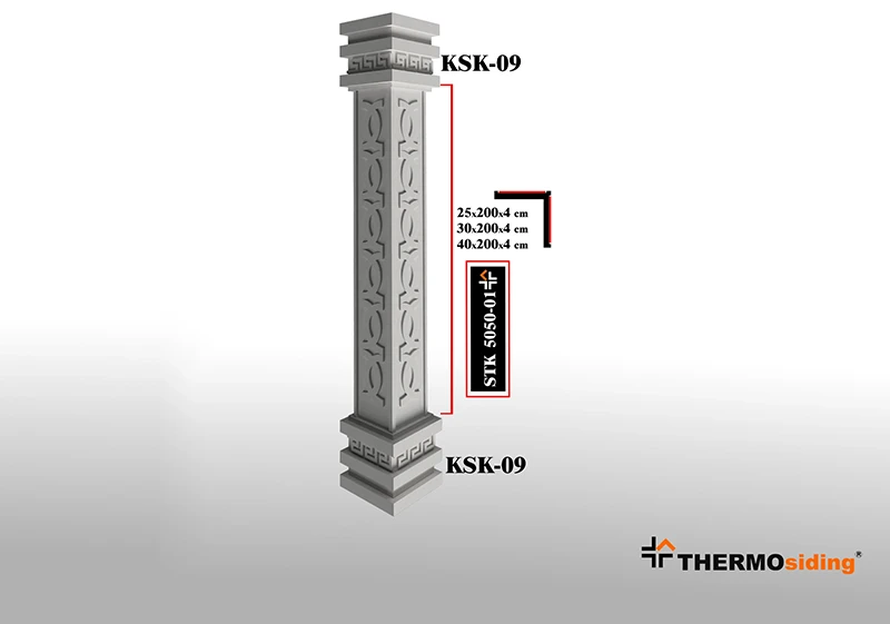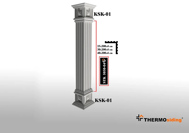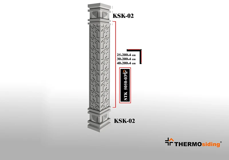 Dış mekanlara estetik bütünlük ve güçlü bir görünüm kazandıran Sütun, dekoratif tasarımı ve dayanıklı yapısıyla cepheleri yeniden tanımlar. Hafif yapısı ve kolay uygulanabilirliği sayesinde hızlı ve pratik bir montaj sunarken, zemin ile cephe arasındaki geçişleri şık bir şekilde tamamlar.